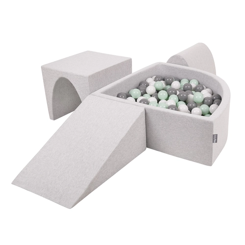 KiddyMoon Foam Playground for Kids with Quarter Angular Ballpit and Balls, lightgrey:white/grey/mint, Ballpit (100 Balls) + Wedge