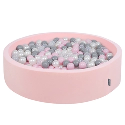 KiddyMoon Soft Ball Pit Round ∅ 7Cm / 2.75In For Kids, Foam Ball Pool Baby Playballs Children, Made In The EU, pink:white-grey-powder pink, 120x30cm/1000 balls