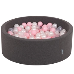 KiddyMoon Baby Foam Ball Pit with Balls ∅ 7cm / 2.75in Made in EU, light grey:white/black/silver/dark pink, 90x30cm/200 balls