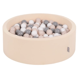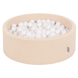 KiddyMoon Baby Foam Ball Pit with Balls ∅ 7cm / 2.75in, beige: white, 90x30cm/200 balls
