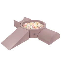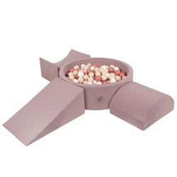 KiddyMoon Foam Playground for Kids with Round Ballpit (Balls ∅ 7cm/2.75In) Soft Obstacles Course and Ball Pool, Made In EU, heather: pastel beige/powder pink/pearl, Ballpit (200 Balls) + Version 2