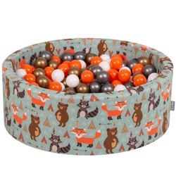 KiddyMoon Baby Foam Ball Pit with Balls ∅ 7cm / 2.75in Made in EU, pink:l.green/orange/turquoise/blue/babyblue/yellow, 90x30cm/200 balls