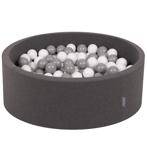 KiddyMoon Baby Foam Ball Pit with Balls ∅ 7cm / 2.75in Made in EU, dark grey:white/grey, 90x30cm/200 balls