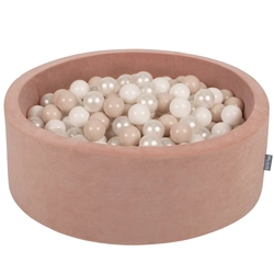 KiddyMoon Soft Ball Pit Round ∅ 7cm / 2.75In for Kids, Foam Velvet Ball Pool Baby Playballs, Made In The EU, desert pink, No balls