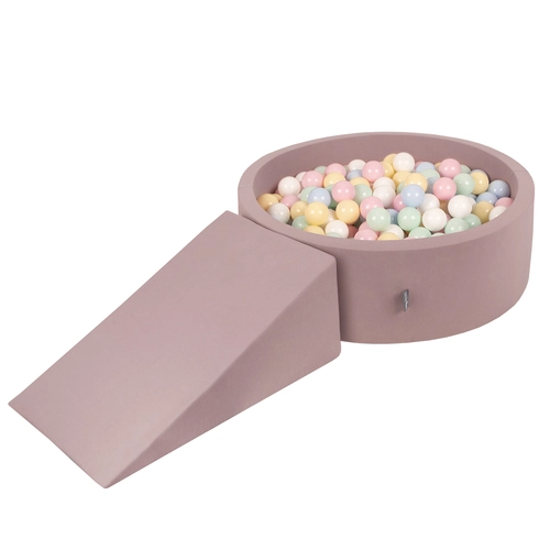 KiddyMoon Foam Playground For Kids Soft Textured Safe Blocks, purple: pastel beige/white/perle/grey, Ballpit (200 Balls) + Wedge
