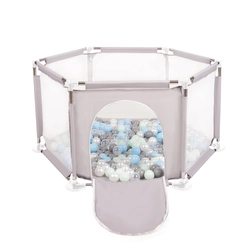 hexagon 6 side play pen with plastic balls, Blue:pearl/grey/transparent/babyblue/mint, 100 balls