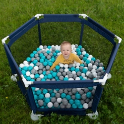 hexagon 6 side play pen with plastic balls, Blue:grey/white/turquoise, 100 balls