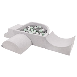 KiddyMoon Foam Playground for Kids with Quarter Angular Ballpit and Balls, lightgrey:white/grey/mint, Ballpit (100 Balls) + Steps