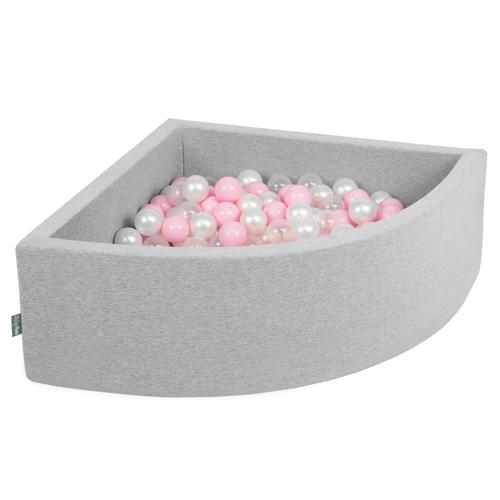 KiddyMoon Baby Foam Ball Pit with Balls ∅ 7cm / 2.75in Made in EU, dark grey:pearl/light pink/silver, 90x30cm/200 balls