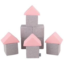 KiddyMoon Soft Foam Cubes Building Blocks 14cm for Children Multifunctional Foam Construction Montessori Toy for Babies, Certified Made in The EU, mix: light grey-pink, 48 Pieces