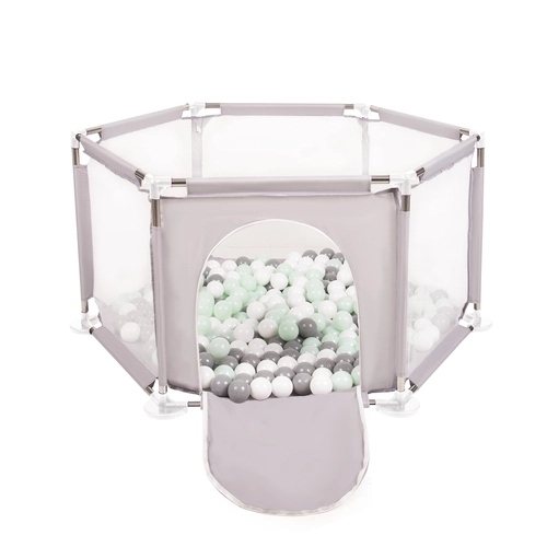 hexagon 6 side play pen with plastic balls, Grey:white/grey/mint, 100 balls