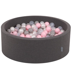 KiddyMoon Baby Foam Ball Pit with Balls β 7cm / 2.75in Made in EU, light grey:white/black/silver/dark pink, 90x30cm/200 balls