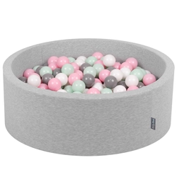 KiddyMoon Baby Foam Ball Pit with Balls β 7cm / 2.75in Made in EU, light grey:white/grey/mint/powder pink, 90x30cm/200 balls