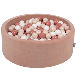 KiddyMoon Soft Ball Pit Round ∅ 7cm / 2.75In for Kids, Foam Velvet Ball Pool Baby Playballs, Made In The EU, desert pink, No balls