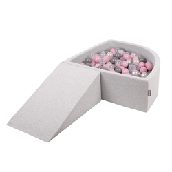 KiddyMoon Foam Playground for Kids with Quarter Angular Ballpit and Balls, lightgrey:pearl/grey/transparent/powderpink, Ballpit (100 Balls) + Wedge