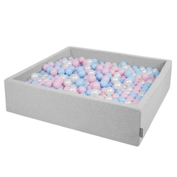 KiddyMoon Soft Ball Pit Square β 7Cm / 2.75In For Kids, Foam Ball Pool Baby Playballs Children, Made In The EU, pink:powder pink-pearl-transparent, 120x30cm/600 balls