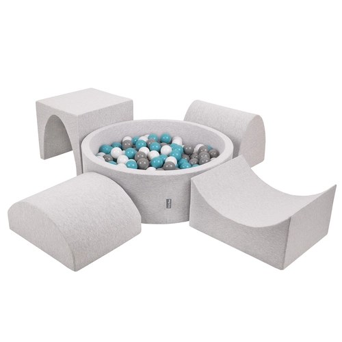 KiddyMoon Foam Playground for Kids with Round Ballpit ( β 7cm/2.75In) Soft Obstacles Course and Ball Pool, Certified Made In The EU, lightgrey:white/grey/powderpink, Ballpit (200 Balls) + Version 5