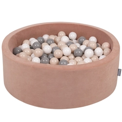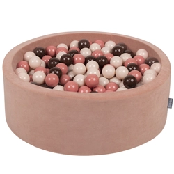 KiddyMoon Soft Ball Pit Round ∅ 7cm / 2.75In for Kids, Foam Velvet Ball Pool Baby Playballs, Made In The EU, desert pink, No balls
