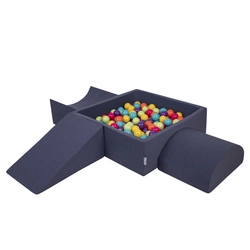KiddyMoon Foam Playground for Kids with Square Ballpit ( β 7cm/2.75In) Soft Obstacles Course and Ball Pool, Certified Made In The EU, darkblue:white/grey/mint, Ballpit (200 Balls) + Version 4