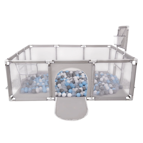 square play pen filled with plastic balls basketball, Grey:white/grey/mint, 100 balls