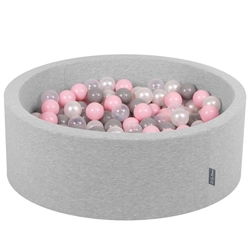 KiddyMoon Baby Foam Ball Pit with Balls ∅ 7cm / 2.75in Made in EU, light grey:pearl/grey/transparent/light pink, 90x30cm/200 balls