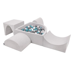 KiddyMoon Foam Playground for Kids with Quarter Angular Ballpit and Balls, lightgrey:grey/white/turquoise, Ballpit (100 Balls) + Steps