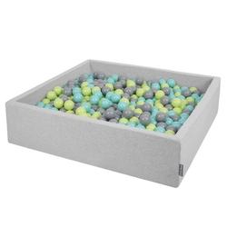 KiddyMoon Soft Ball Pit Square ∅ 7Cm / 2.75In For Kids, Foam Ball Pool Baby Playballs Children, Made In The EU, dark grey:white-grey-black-gold, 120x30cm/300 balls