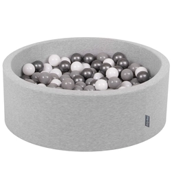 KiddyMoon Baby Foam Ball Pit with Balls ∅ 7cm / 2.75in Made in EU, light grey:white/grey/silver, 90x30cm/200 balls