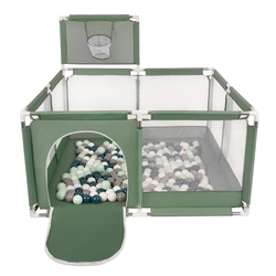 square play pen filled with plastic balls basketball, green:white/grey/mint, 400 balls