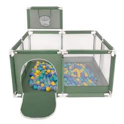 square play pen filled with plastic balls basketball, green:white/grey/mint, 400 balls