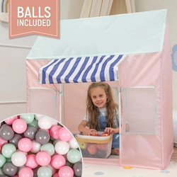 Pop-Up Play Crawl Tunnel with balls for Toddlers Kids, Light Beige: Pastel Beige/White/Mint, 400 Balls