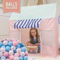 Pop-Up Play Crawl Tunnel with balls for Toddlers Kids, Light Beige: Pastel Beige/Pastel Blue/White, 200 Balls