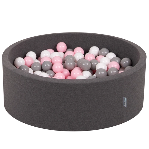 KiddyMoon Baby Foam Ball Pit with Balls ∅ 7cm / 2.75in Made in EU, dark grey:white/grey/light pink, 90x30cm/300 balls