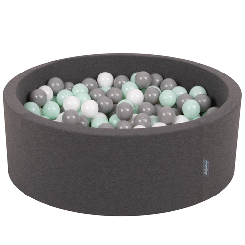 KiddyMoon Baby Foam Ball Pit with Balls ∅ 7cm / 2.75in Made in EU, dark grey:white/grey/mint, 90x30cm/200 balls