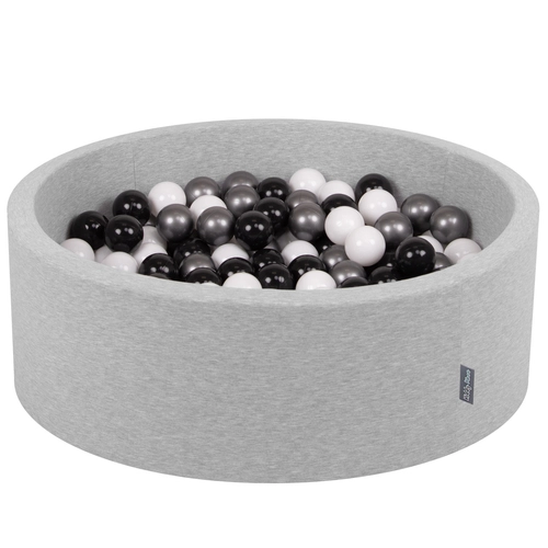 KiddyMoon Baby Foam Ball Pit with Balls ∅ 7cm / 2.75in Made in EU, light grey:white/black/silver, 90x30cm/200 balls