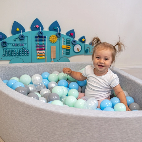 • Pool with 200/300 balls ∅ 7 cm supports sensory integration of infants. While playing with the KiddyMoon balls, your child develops both grasping and colour distinguishing skills.