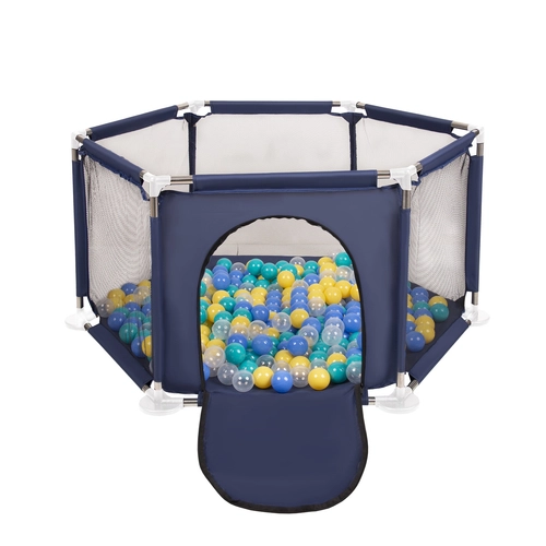 hexagon 6 side play pen with plastic balls, Blue:turquoise/blue/yellow/transparent, 200 balls
