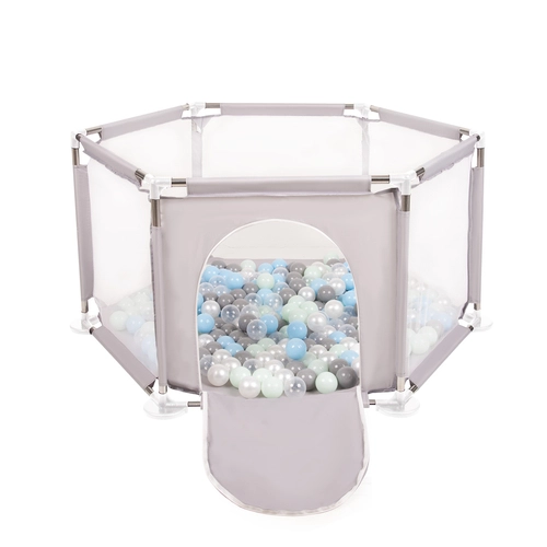 hexagon 6 side play pen with plastic balls, Grey:pearl/grey/transparent/babyblue/mint, 200 balls