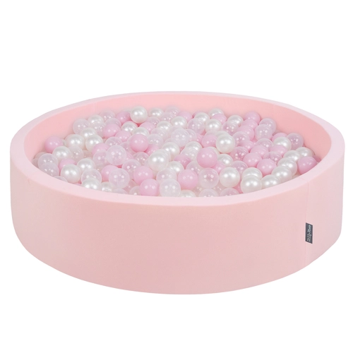 KiddyMoon Soft Ball Pit Round ∅ 7Cm / 2.75In For Kids, Foam Ball Pool Baby Playballs Children, Made In The EU, pink:powder pink-pearl-transparent, 120x30cm/300 balls