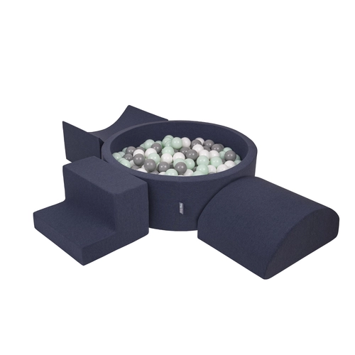 KiddyMoon Foam Playground for Kids with Round Ballpit ( ∅ 7cm/2.75In) Soft Obstacles Course and Ball Pool, Certified Made In The EU, darkblue:white/grey/mint, Ballpit (200 Balls) + Version 6