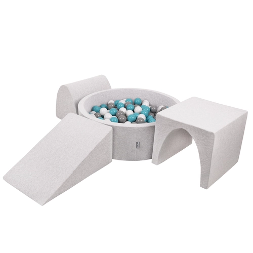 KiddyMoon Foam Playground for Kids with Round Ballpit (Balls ∅ 7cm/2.75In) Soft Obstacles Course and Ball Pool, Made In EU, lightgrey:grey/white/turquoise, Ballpit (200 Balls) + Version 2