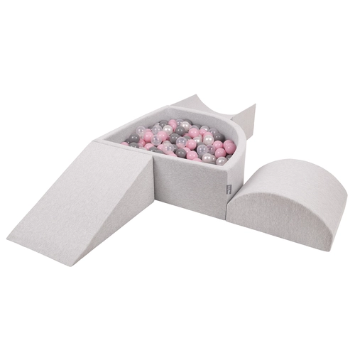 KiddyMoon Foam Playground for Kids with Quarter Angular Ballpit and Balls, lightgrey:pearl/grey/transparent/powderpink, Ballpit (200 Balls) + Version 4