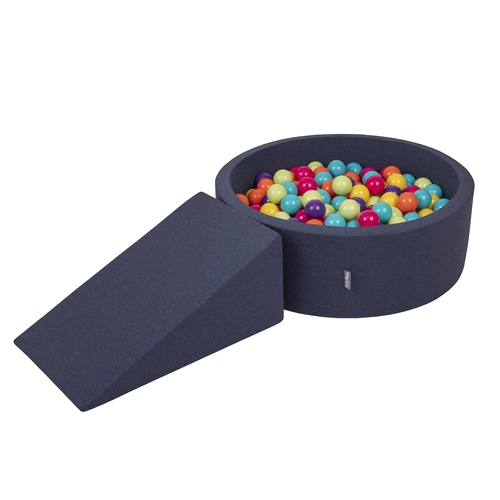 KiddyMoon Foam Playground for Kids with Round Ballpit ( ∅ 7cm/2.75In) Soft Obstacles Course and Ball Pool, Certified Made In The EU, darkblue:lgreen/yellow/turquoi/orange/dpink/purple, Ballpit (100 Balls) + Wedge