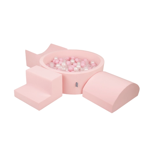 KiddyMoon Foam Playground for Kids with Round Ballpit ( ∅ 7cm/2.75In) Soft Obstacles Course and Ball Pool, Certified Made In The EU, pink:powder pink/pearl/transparent, Ballpit (200 Balls) + Version 6
