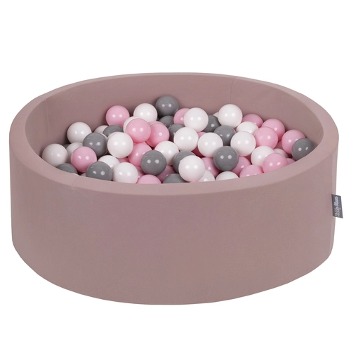 KiddyMoon Foam Ball Pit for Children with Balls, Soft Sensory Play, Durable Removable Cover, Safe Indoor Ballpit for Kids and Toddlers, heather:white/grey/light pink, 90x30cm/200 balls