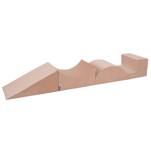 KiddyMoon Foam Playground Velvet for Kids Obstacle Course for Children Montessori Toy for Babies Soft Construction Blocks Element, Tunnel/Hill, Certified Made in The EU, desert pink, Multi-Size