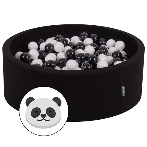 KiddyMoon Baby Foam Ball Pit with Balls ∅ 7cm / 2.75in Made in EU, Panda: black/white, 90x30cm/200 balls