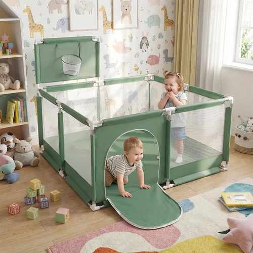 Demountable playpen with plastic balls in a shape of a field ensures hours of endless fun for one or more kids. Easy to assemble and put away or even to take away for holidays or parties. Basketball area gives extra fun!