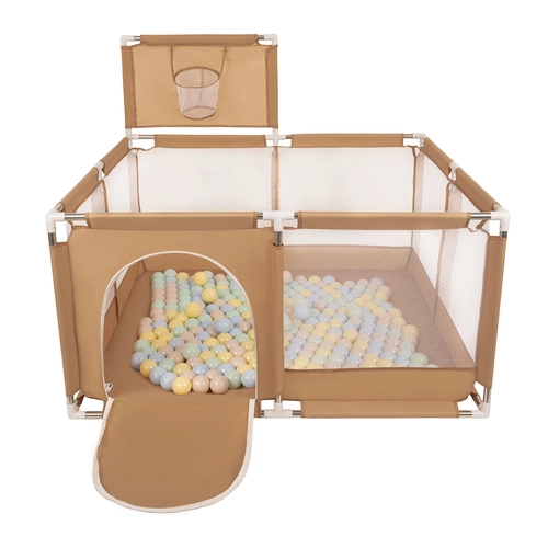 square play pen filled with plastic balls basketball, beige:pastel beige/pastel blue/pastel yellow/mint, 400 balls