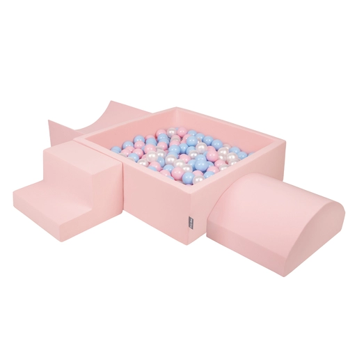 KiddyMoon Foam Playground for Kids with Square Ballpit ( ∅ 7cm/2.75In) Soft Obstacles Course and Ball Pool, Certified Made In The EU, pink:babyblue/powder pink/pearl, Ballpit (200 Balls) + Version 6